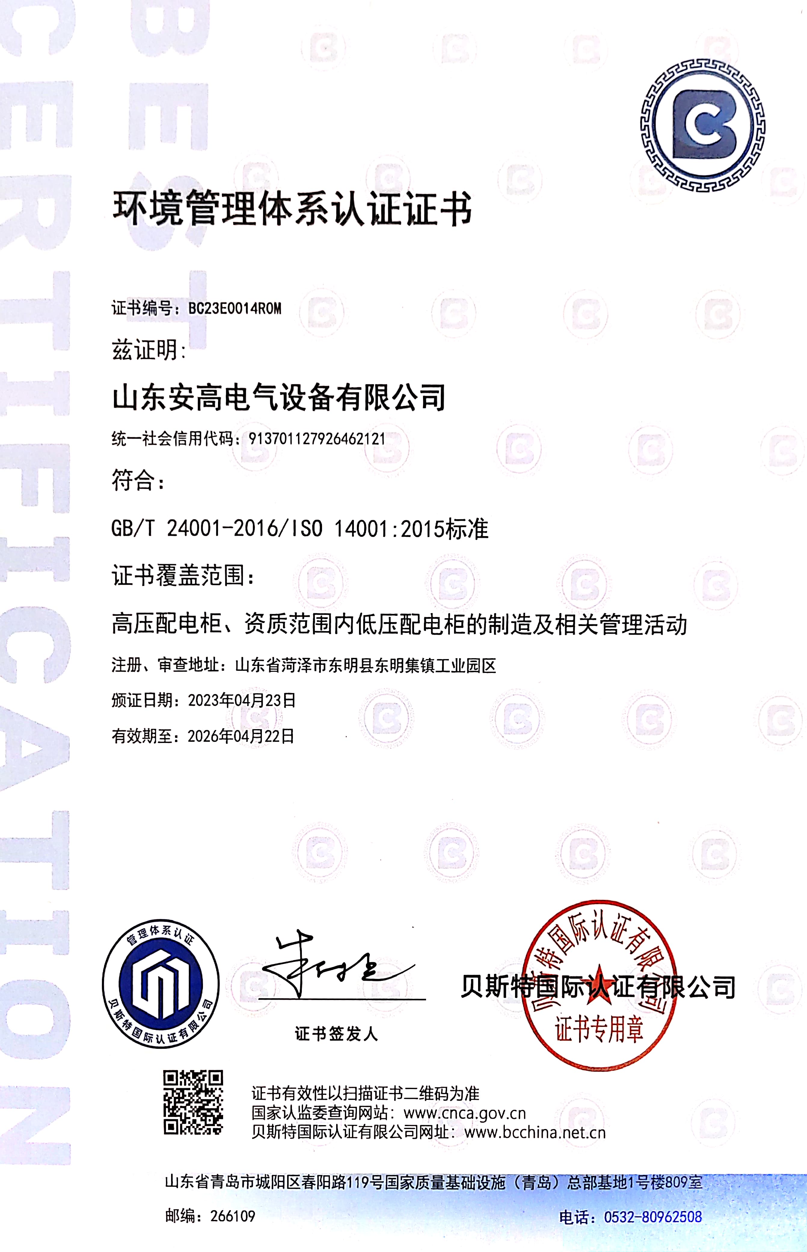 • 環境管理體系認證